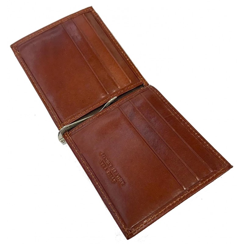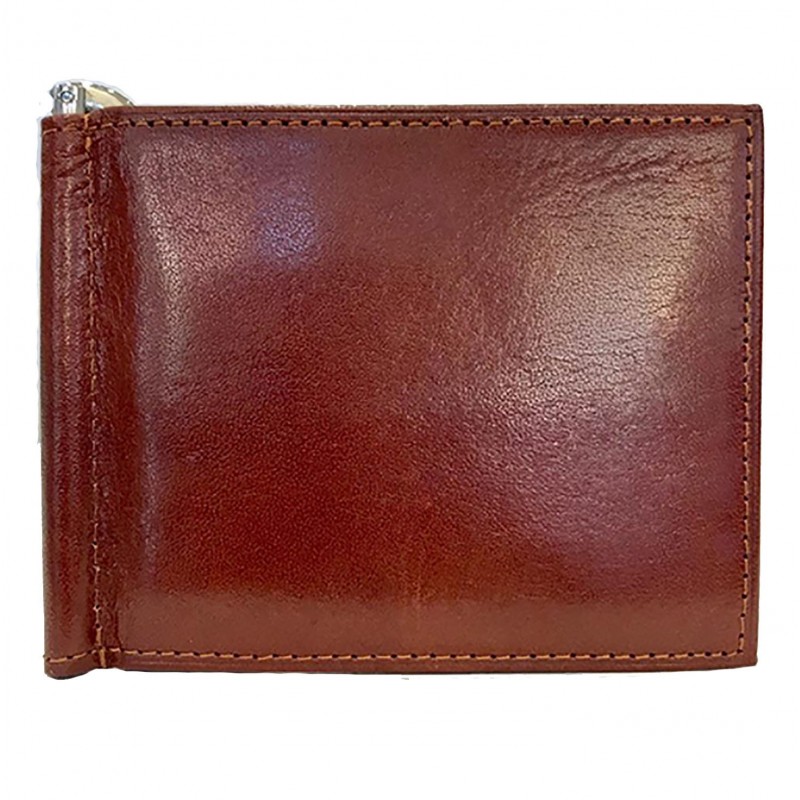 CARTERA DE CUERO CON PINZA PARA BILLETES Y MONEDERO MARRÓN