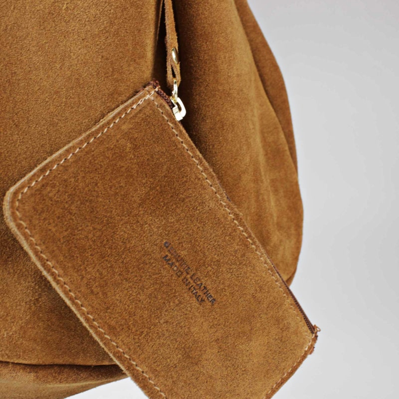 - una busta con cerniera estraibile in pelle suede